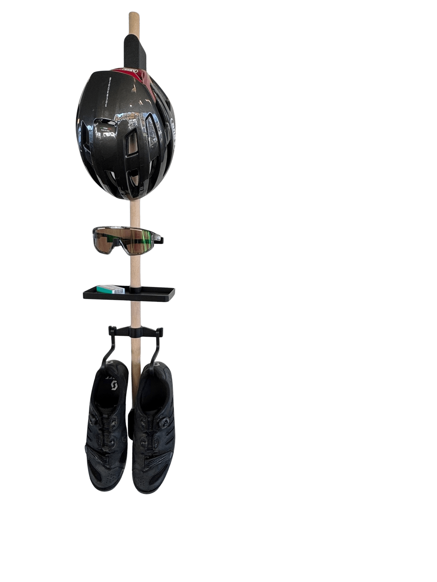 Bringe Ordnung und Stil in deine Bike-Ecke! Unser hochwertiger Fahrrad-Accessoires-Halter ist die perfekte Lösung, um dein Equipment sicher, übersichtlich und mit einem Hauch von Eleganz aufzubewahren.