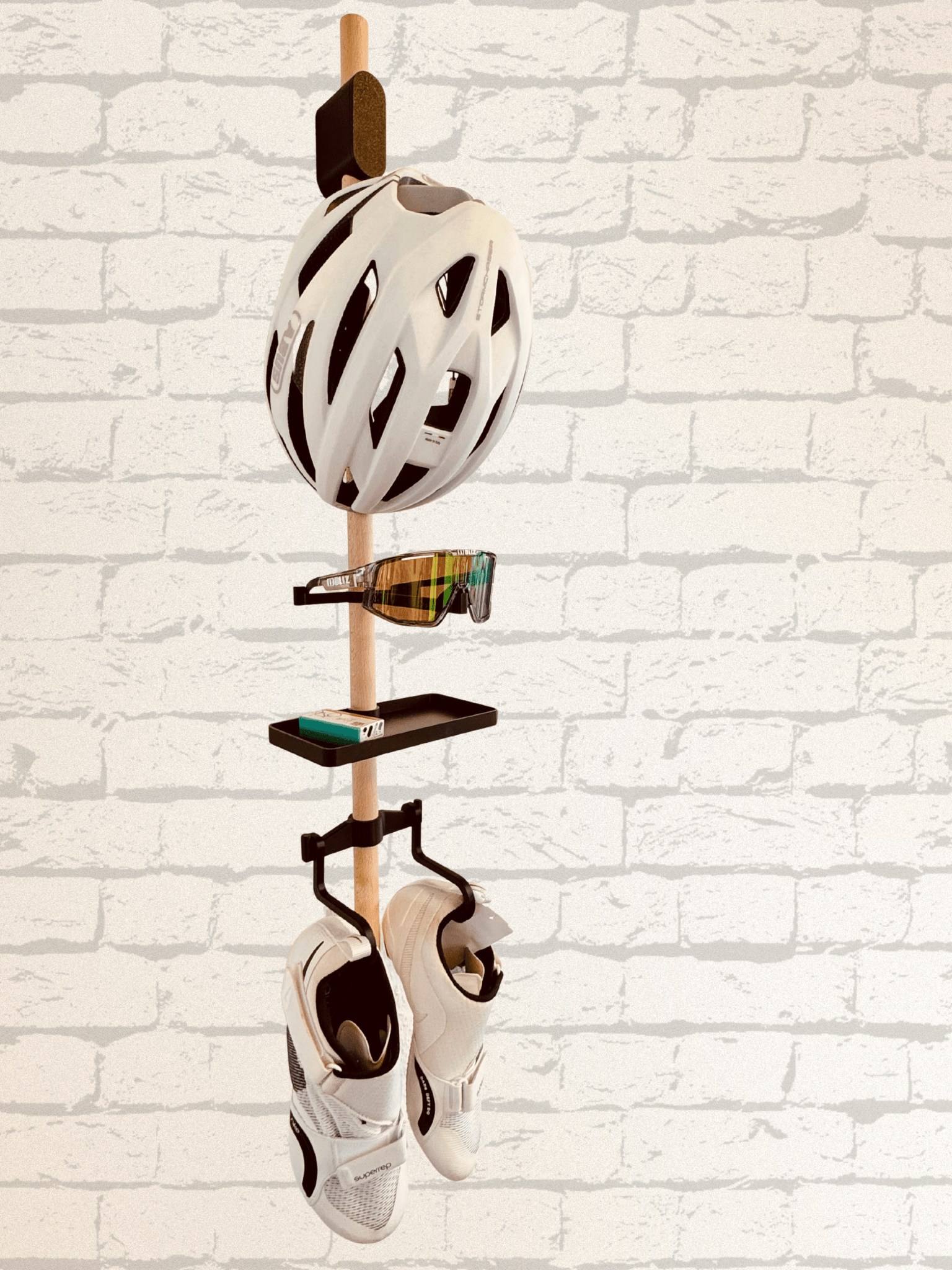 Bringe Ordnung und Stil in deine Bike-Ecke! Unser hochwertiger Fahrrad-Accessoires-Halter ist die perfekte Lösung, um dein Equipment sicher, übersichtlich und mit einem Hauch von Eleganz aufzubewahren.